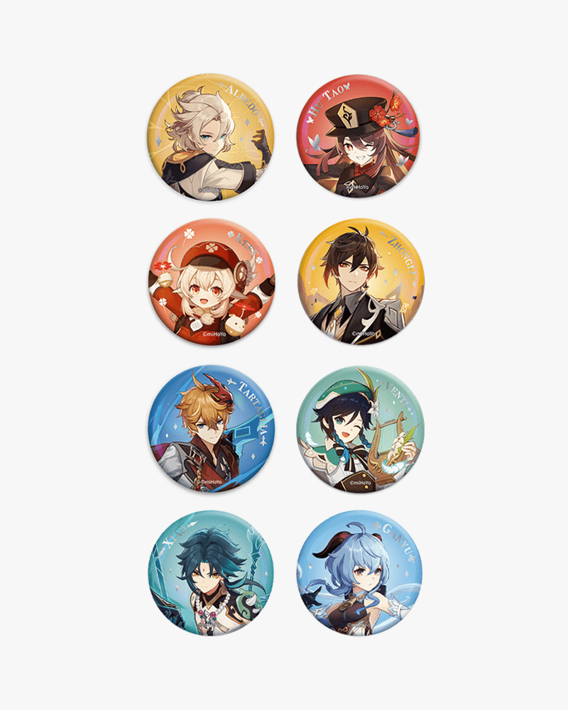 The best way to show off your love for your favourite Genshin Impact© character? Pin one of these character badges onto your jacket or bag! Each colourful badge is beautifully illustrated with one of eight characters.